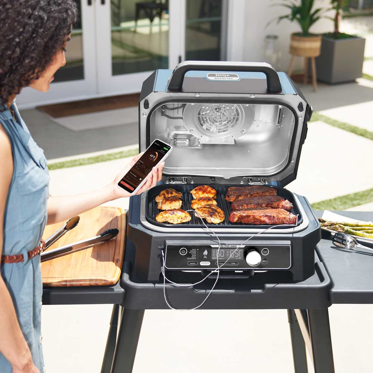 Grill, smoke, air fry outdoors, and even monitor and control your cook from your phone with the Ninja Pro Connect™ app.